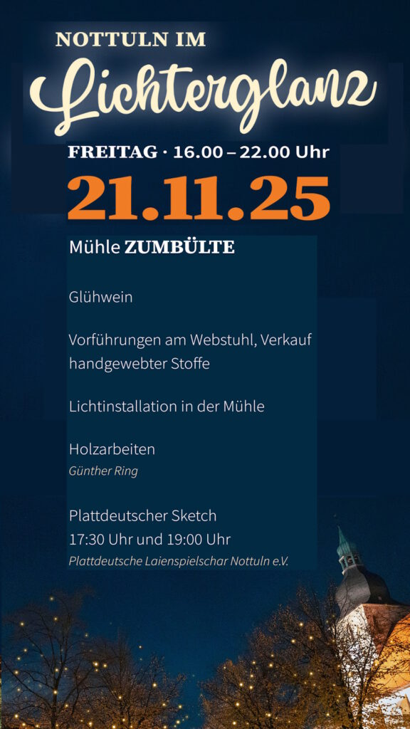 Auf diesen Seiten informieren wir über die Mühle Zumbülte in Nottuln, ihre Geschichte und die Projekte zur Restaurierung.
